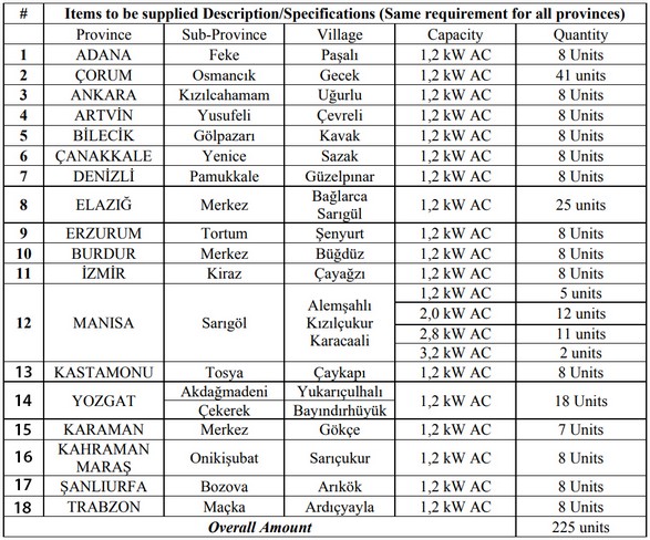 Birleşmiş Milletler Kalkınma Programı (UNDP) Türkiye Ülke Ofisi, Orman Köylerinde Güneş Enerjisinden Elektrik Üretimi İçin Sürdürülebilir Enerji Finans Mekanizması (ORKÖY PV) Projesi kapsamında 18 ilde kurulacak olan 225 pilot tesisin 2’inci Çatı Tipi PV Sistemi ihale dokümanlarını yayınladı.