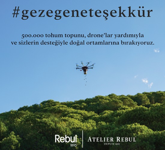 125 yılı aşkın köklü tarihiyle nesiller arasında seyahat eden Rebul Şirketler Grubu, gelecek nesillere daha temiz, daha yaşanabilir bir dünya hazırlama misyonuyla çalışmalarına devam ediyor. Son olarak, sürdürülebilirlik eforlarına yeni bir adım olan ‘Gezegene Teşekkür’ ağaçlandırma projesini hayata geçiren marka, 500.000 tohum topunu, insansız hava araçları ecoDrone’lar ile ağaçlandırılması gereken alanlara dağıtacak.