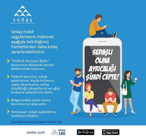 Aboneler, 186 numaralı Müşteri İletişim Hattının yanı sıra; Google Play ve App Store’dan ücretsiz indirilebilen “SEDAŞ Mobil” uygulaması, SEDAŞ websitesi üzerinden ulaşabilen canlı Web Chat hattı ve 0(530) 9 19 19 19 numaralı “SEDAŞ Whatsapp Hattı” üzerinden SEDAŞ’a en kısa sürede ulaşabiliyorlar. Ayrıca; enerji bağlantısı, şebeke, sayaç ve sokak aydınlatmalarıyla ilgili talepler, arıza ihbarları, bakım ve onarım talepleri, kaçak tahakkuk işlemleri ve itirazları www.sedas.com web sitesinde yer alan Bireysel Müşteri İşlemleri kısmından kolaylıkla iletilebiliyor.