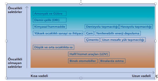Yenilenebilir hidrojenin öncelikli kullanılabileceği sektörler: