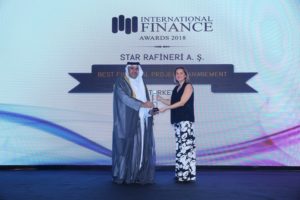 Proje finansmanını 5 yıl boyunca sözleşme kurallarına uygun, etkili ve başarılı bir şekilde yöneten STAR Rafineri, “Best Financial Project Management – En iyi Finansal Proje Yönetimi” ödülü kazandı. STAR Rafineri Genel Müdürü Mesut İlter, projenin finansal yönetimi anlamında önemli başarılara imza attıklarını söyledi.