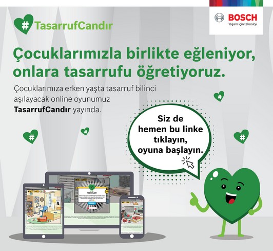 Bosch Termoteknik Pazarlama Direktörü Ali Aktaş konu hakkındaki görüşlerini: “Tasarrufun önemine daha fazla odaklanmamız gerektiğini düşündüğümüz bir süreçten geçiyoruz. Her yıl olduğu gibi bu yıl da yepyeni bir kampanya ile çocuklarımızda tasarruf hakkında farkındalık yaratmayı hedefliyoruz. Bosch Termoteknoloji olarak uzun ömürlü ve yüksek tasarruf sağlayan ürünlerimizin yanında, tüketicilerde tasarruf bilincinin oluşması markamızın taşıdığı sorumluluk alanlarından birini oluşturuyor. Bu farkındalıkla, çocuklarımızın ebeveynleriyle birlikte oynayabildiği oyunumuzla gündelik hayatımızdaki tasarruf alışkanlıklarının çocuklarımızda yaygınlaşmasını amaçlıyoruz. Bu amaç için sosyal medyanın ve güncel trendlerin gücüyle harekete geçtik ve oyunlaştırma yöntemini kullanarak öğretici ve eğlenceli bir kurgu yarattık. Çocuklarımızın tasarrufu öğrenerek dünyamızın sürdürülebilirliğine katkı sağlamasını her daim destekliyoruz.” sözleriyle aktardı.