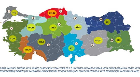 Kapasite’nin 784,75 MW’lık kısmı ana kaynağı rüzgar ve güneş olan kapasite artışları için, 1.322,82 MW’lık bölümü hibrit projeler için ve 680,13 MW’lık kısmı ise lisanssız elektrik üretim yönetmeliğinin 5.1.h. maddesi kapsamındaki projeler için sağlanacak.