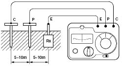 Topraklama Ölçümleri’nde “ üç uçlu toprak geçiş direnç ölçümü yöntemi ”  kullanılmaktadır. Topraklama Ölçümü düzeneği prensip olarak yukarıdaki temsili görsel gibidir.