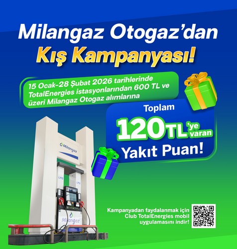 Club TotalEnergies üyelerine özel kış kampanyası düzenleyen TotalEnergies İstasyonları, Milangaz Otogaz alışverişlerinde 120 TL’ye kadar yakıt puan hediye ediyor. Kampanya 15 Ocak-28 Şubat tarihleri arasında geçerli olacak.