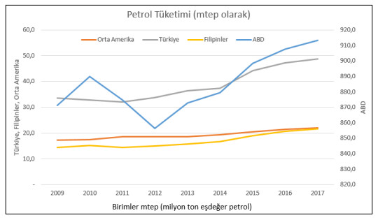 Emisyonda ise yine son 5 yılda Türkiye OECD dışı ülkeler, Asya Pasifik’le yakınlaşmaktadır. Son yıllarda hızla artan petrol talebinde ise Türkiye en çok ABD’ye benzemektedir.