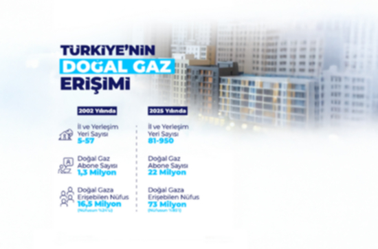 Enerji ve Tabii Kaynaklar Bakanı Alparslan Bayraktar, son 23 yılda 81 il, 950 yerleşim yeri ve 229 OSB’ye doğal gazı ulaştırdıklarını belirterek, “Son 1 yılda 51 yerleşim yerine doğal gaz arzı sağladık ve Türkiye genelinde konut abone sayısı da yaklaşık 1 milyon arttı.” açıklamasını yaptı.