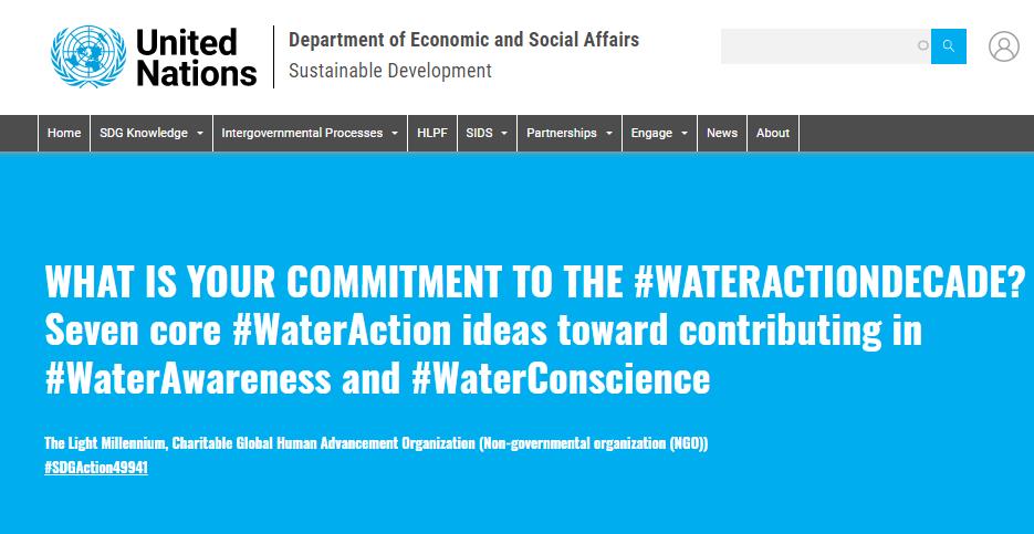 | UN 2023 Water Conference (in-person) Side Event ID#W175: On #WaterActionDecade by LMGlobal.Org – The Light Millennium, Inc. Charitable |