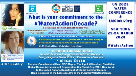 LMGlobal.Org, “What is your commitment to the #WaterActionDecade? Seven core #WaterAction ideas toward #WaterAwarenes, #WaterConscience & #GameChangers” temasıyla bir etkinlik teklifi verildi, kabul edildi ve 21 Mart 2023 tarihinde, 2023 BM Su Konferansı çerçevesinde, çoklu global düzeyde paydaşlarla işbirliiyle sunacak. LMGlobal.Org’un etkinlik ana teması, “UN2023WaterConference”ın aynı zamanda, konferansın genel kapsamını ve 5. alt temasını da desteklemek amaçlı tasarlanmıştır. (INTERACTIVE DIALOGUE THEME 5 – Water Action Decade (2018 – 2028): Accelerating the implementation of the objectives of the Decade)