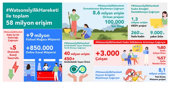 “Watsons İyilik Hareketi Ormanlarımızı Büyütmeye Çağırıyor” projesi kapsamında da 2022 yılında TEMA Vakfı ve ÇEKÜL iş birliği ile 76.580 fidan bağışlandı. Watsons, bu projeyle 2030 yılında 1 milyon fidan bağışına ulaşmayı hedefliyor.